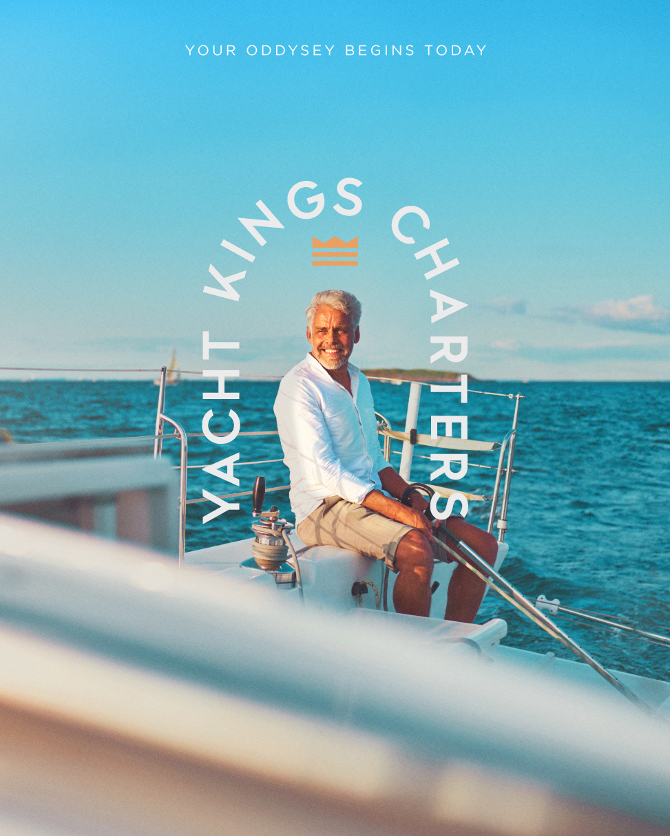Rebranding made for Yacht Kings Charters; a yacht charter company based on Miami Florida. This branding takes elements that enhance the Yacht Kings name and build a story around escape and enjoyment. The colors, characters, shapes and textures were carefully constructed to communicate quality, tradition, exclusivity and fun.